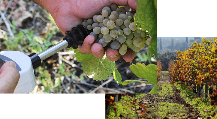 Preenchimento da declaração de colheita e produção do vinho. Medição do grau de maturação de uvas pré-colheita. Análise de amostras de mosto e vinho.